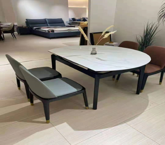 Solid Wood Legs + Metal Frame + Stone Slab Surface